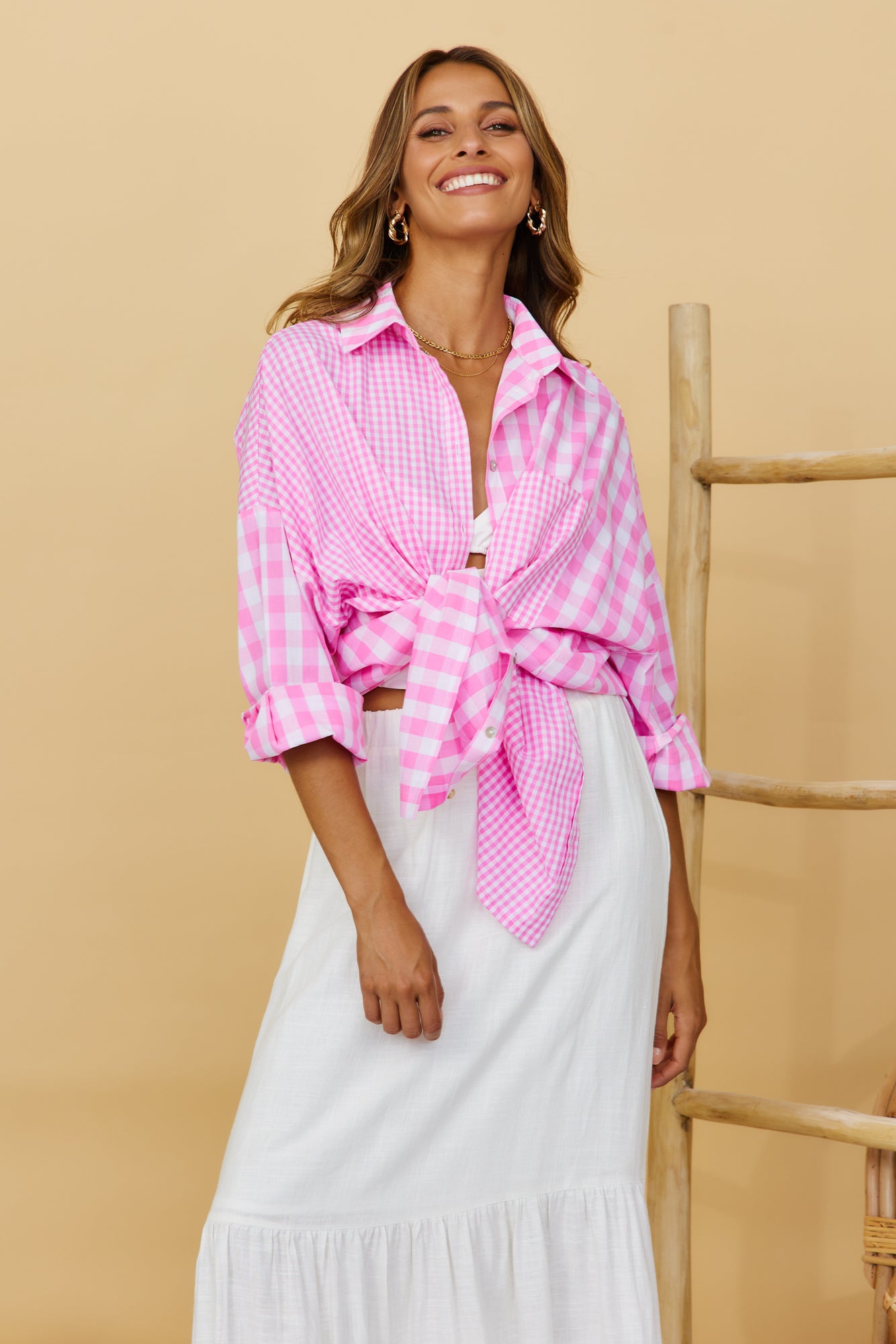 While lounging and leisuring on an isolated Mediterranean coastal paradise, throw on our billowy linen Strawberry Dreams Shirt over your fave bikini. We're styling ours with matching beige slides.