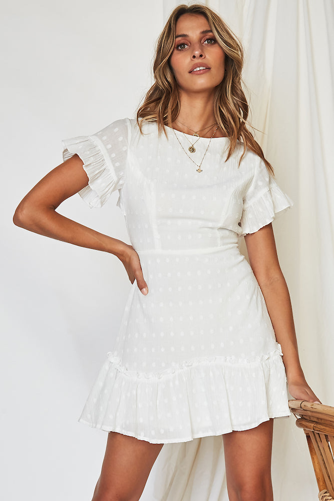 Our Sunday Caption Dress was made for Summer brunches in the park. Style yours with woven wedges and a basket bag!