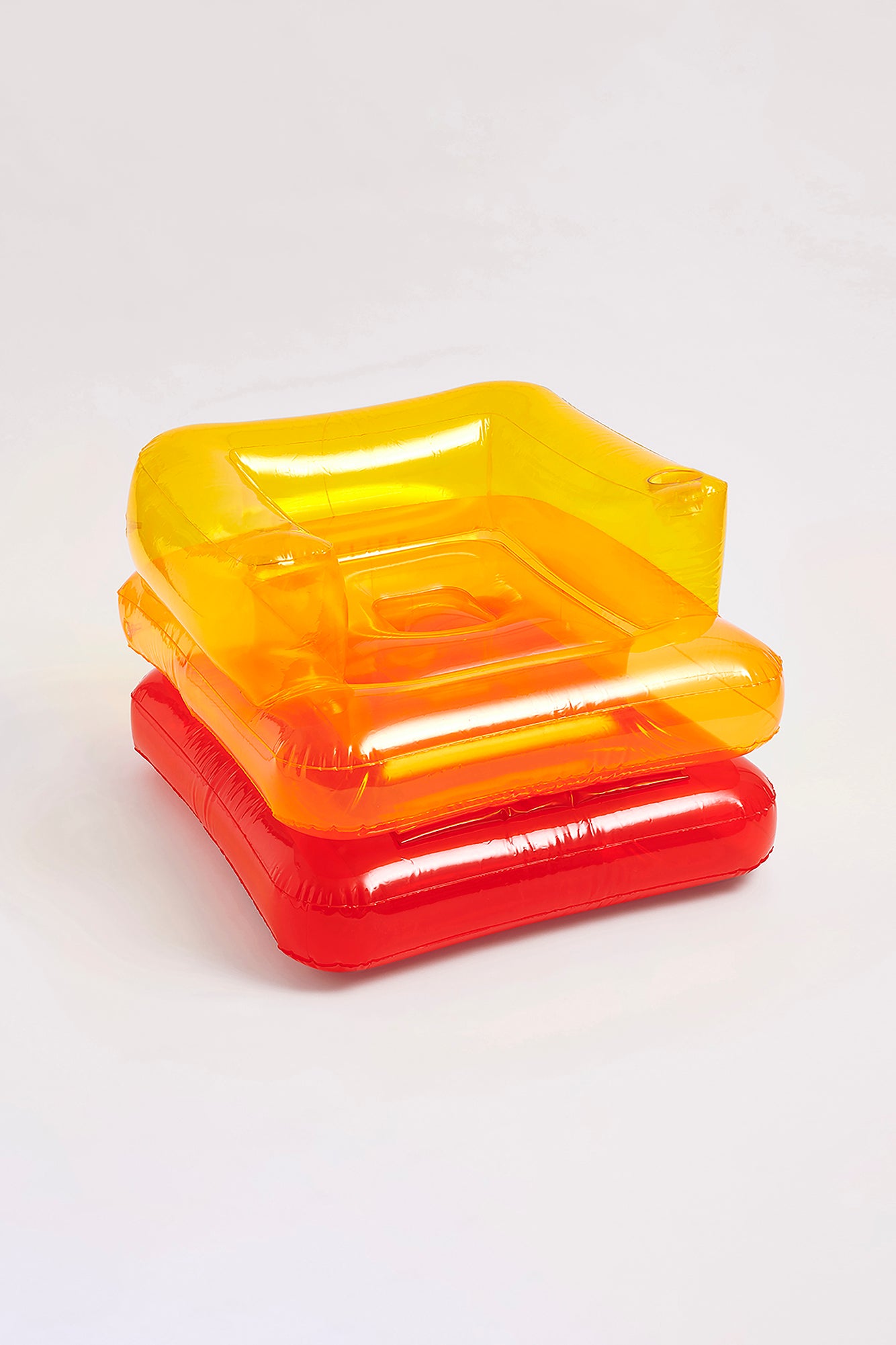 Lay back and chill this summer with the Sunset Inflatable Lilo Chair. In a glowing ombre of bright shades, the Sunset Inflatable Lilo Chair will instantly transport you to a balmy tropical paradise.