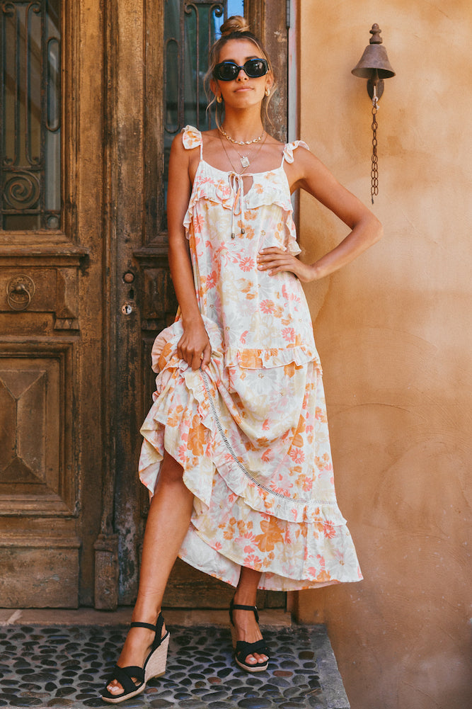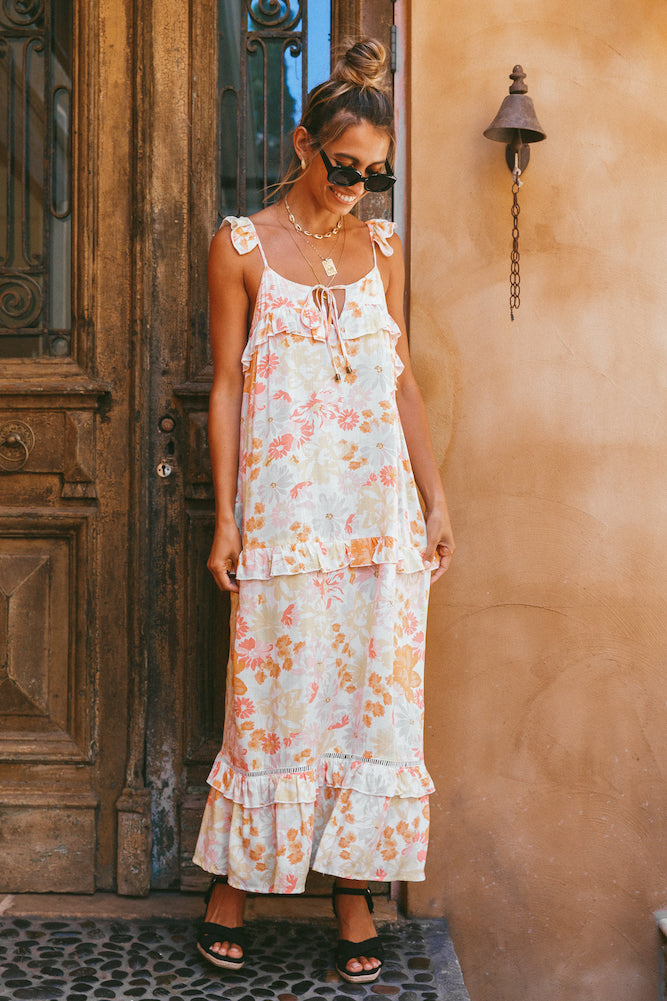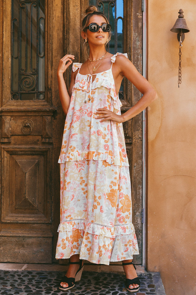 We're basking in the sun and feeling the breeze in the Sunshine Bouquet Maxi Dress! Style yours with a straw hat and sandals for the perfect picnic outfit.