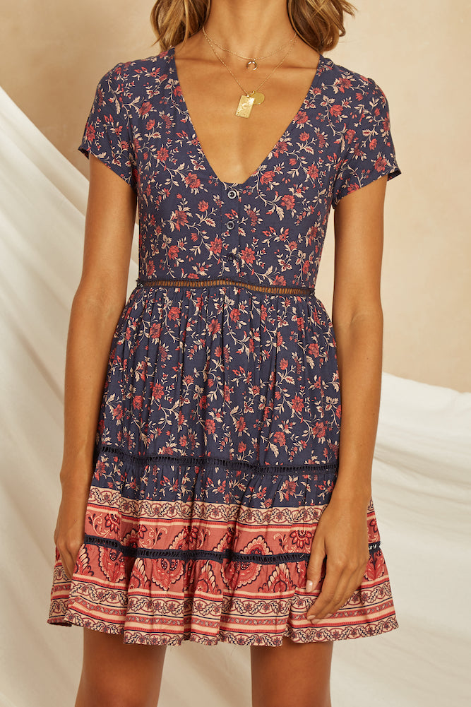 Pretty as a picture, the Swallow Point Dress is exactly that! Every travel influencer and Instagram 'IT' girl is in love with this sweet, baby doll style. Featuring a button down front and a cut out lattice detail throughout. Style yours with a hair bandana and western-style boots!