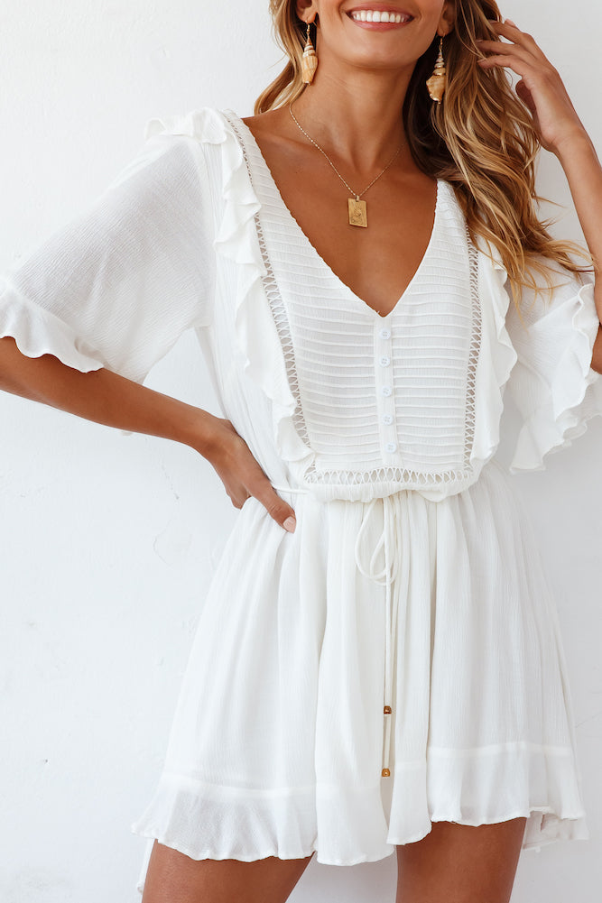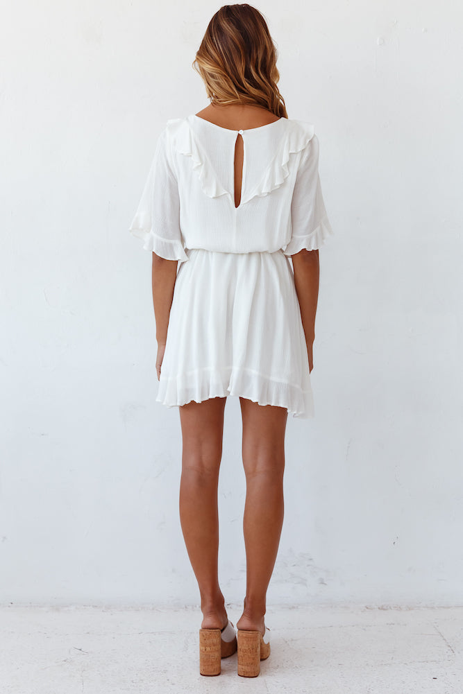 Walk through waves and enjoy bare-footed walks along a sandy shoreline in our Wander Endlessly Dress! We enjoy wearing this frilled style with layered fine jewellery in sparkling golds.