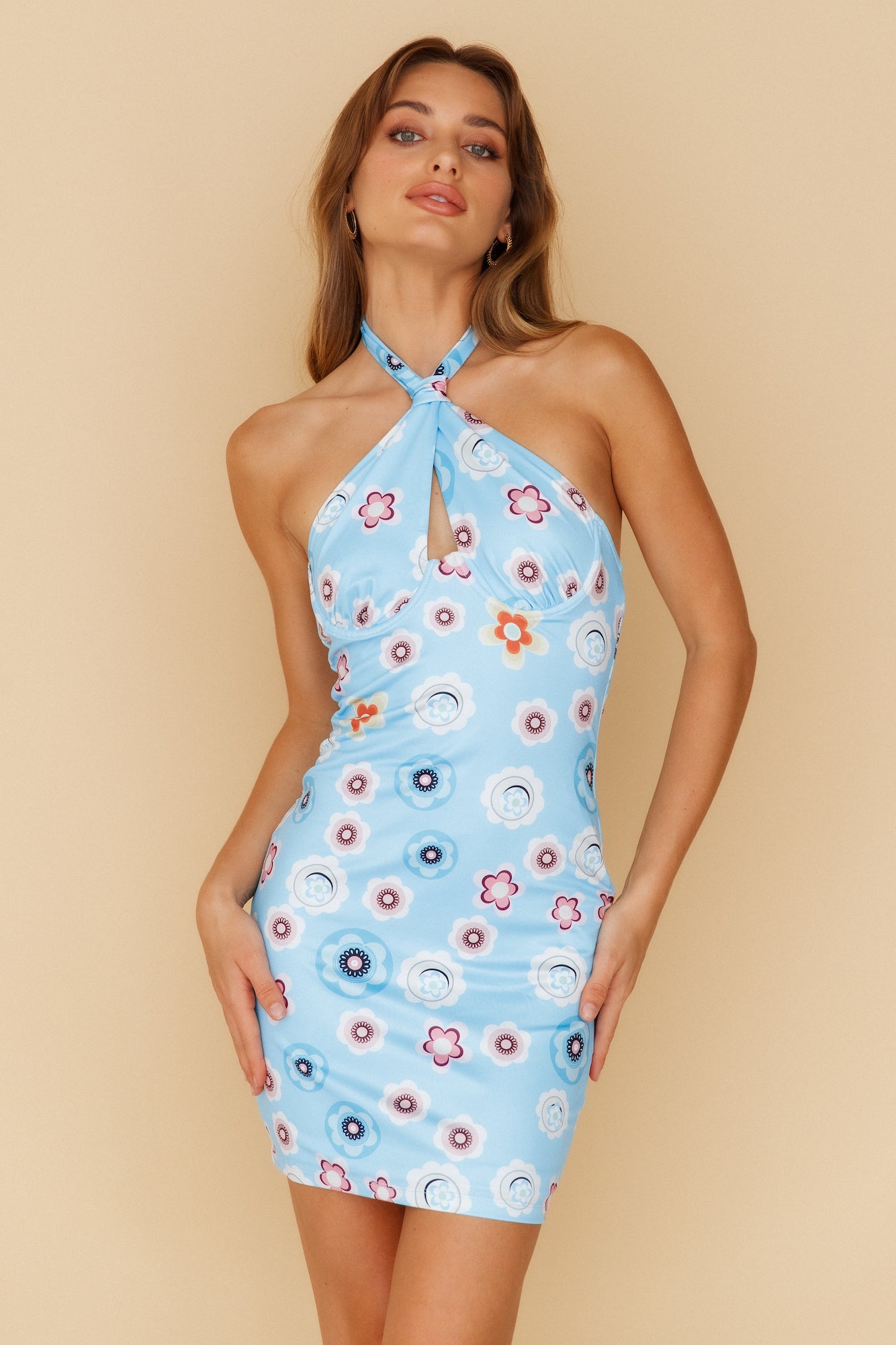 - Halter neckline with bust cutout